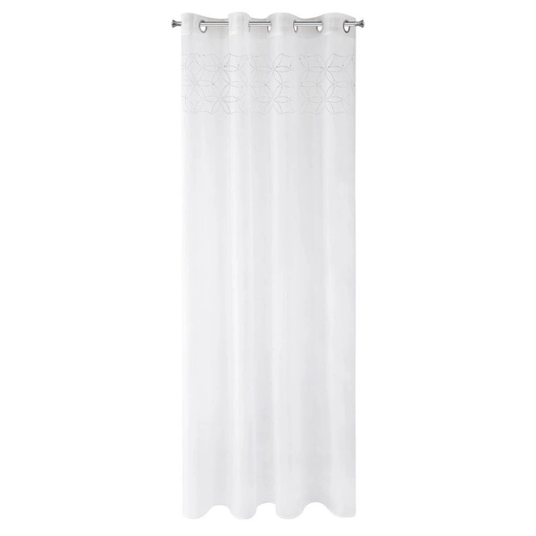 Firana Lila to efektowna dekoracja okienna, wyróżniająca się wzorem geometrycznym z błyszczących cyrkonii. Uszyta z delikatnej tkaniny nie zaciemnia pomieszczenia, ale zapewnia komfort i prywatność. Wszyte przelotki sprawiają, że firana estetycznie wygląda na karniszu oraz układa się w regularne fale. Znakomita do sypialni, jadalni i salonu.