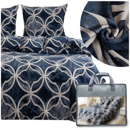 Blanket 200 x 220 Stamped Plush Nancy Navy Blue