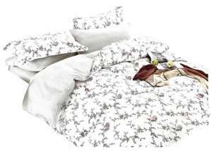 Cotton Satin Bedding in Flowers White A856 200x220PP 4 parts